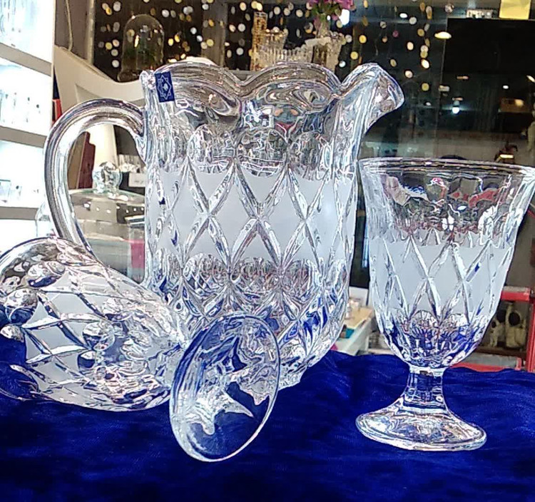 پارچ و 6 گیلاس طرح آنجلیکا تراش دستبسیار شفاف و براق. مارک K.F.Z