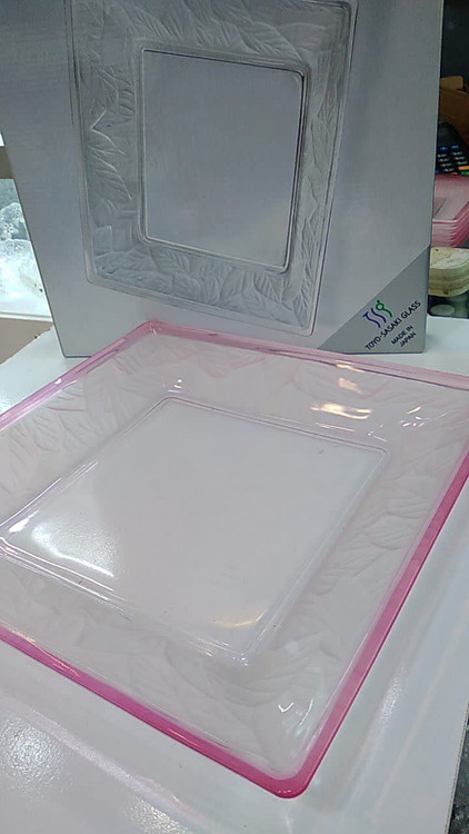 دیس شیرینی مارک تویو ژاپن. در دو رنگ سفید و صورتی. بسیار شیک و شفاف. اندازه 30*30