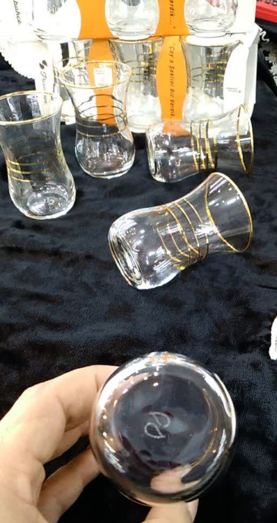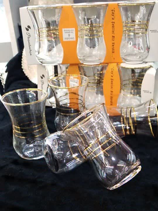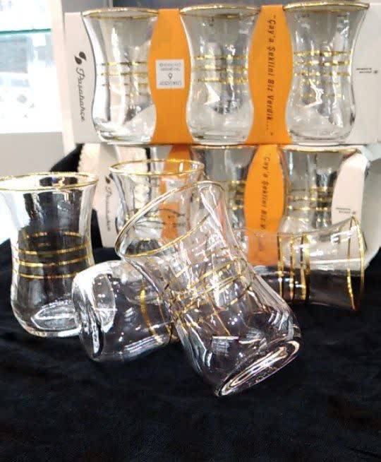 استکان کمر باریک لب طلا حک شده مارک پاشا باغچه بسیار با کیفیت