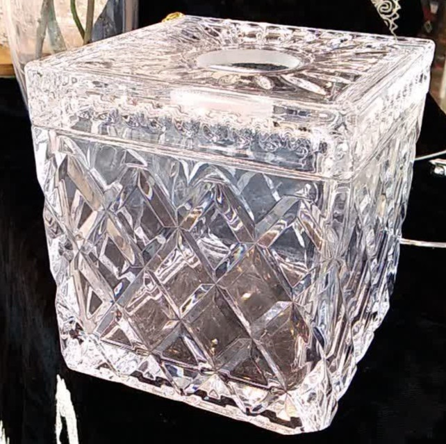 جا دستمال کاغذی کریستالی مربع بزرگ مدل میلیونه وارداتی ساخت چین. قطر 14*14 ارتفاع 15 سانتیمتر