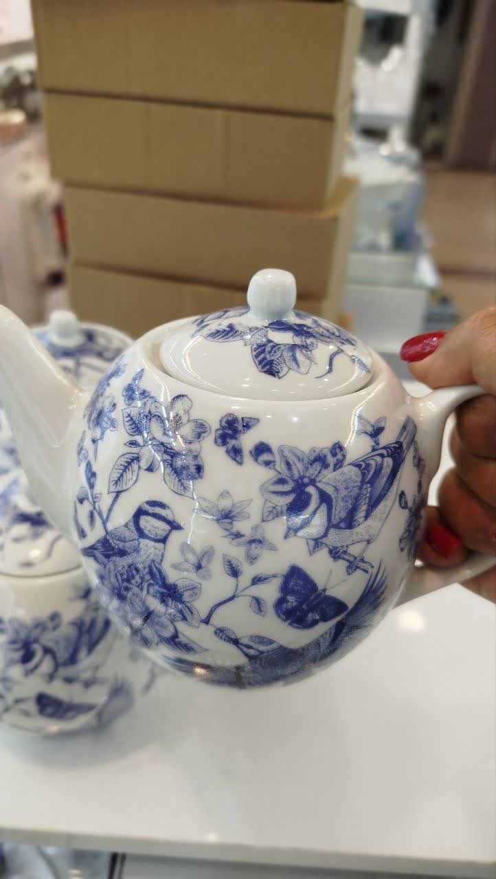 قوری کوچک 600 میلی طرح پرستو آبی داخلی
